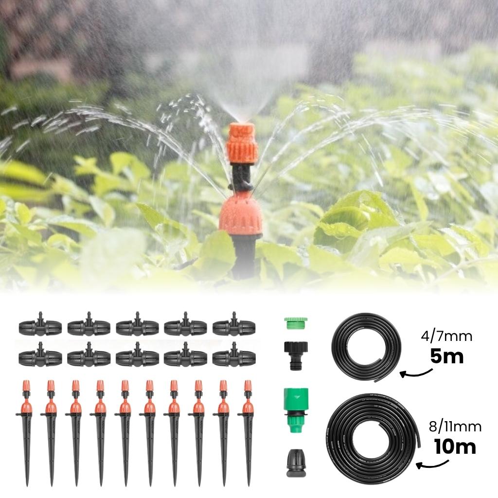 Ein Bewässerungssystem für Gartenbeete, Töpfe oder bestimmte Teile des Rasens vereinfacht Ihre Gartenarbeit und spart Zeit. Sie erhalten ein vollständiges Bewässerungssystem zur sofortigen Verwendung. Das Produkt kombiniert Tropfbewässerung mit einer sanften Besprühung der Umgebung. Im Set enthalten sind ein Schlauch mit einem Durchmesser von 8/11 mm und eine Tropfleitung mit einem Durchmesser von 4/7 mm. Es handelt sich um eine Kapillarbewässerung, die dank der verstellbaren Düse an Ihre Bedürfnisse angepasst werden kann.