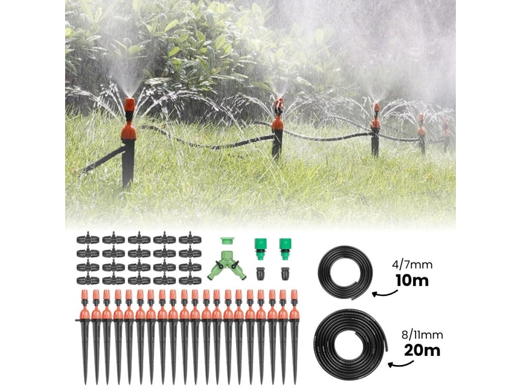 Ein Bewässerungssystem für Gartenbeete, Töpfe oder bestimmte Teile des Rasens macht die Pflege Ihres Gartens einfacher und spart Ihnen Zeit. Sie kaufen ein komplettes Bewässerungssystem für den sofortigen Einsatz. Das Produkt kombiniert die Tropfbewässerung mit einer sanften Besprühung der Umgebung. Das Set enthält einen Schlauch mit einem Durchmesser von 8/11 mm und eine Tropfleitung mit einem Durchmesser von 4/7 mm. Es handelt sich um eine Kapillarbewässerung, die dank der verstellbaren Düse an Ihren Zweck angepasst werden kann.