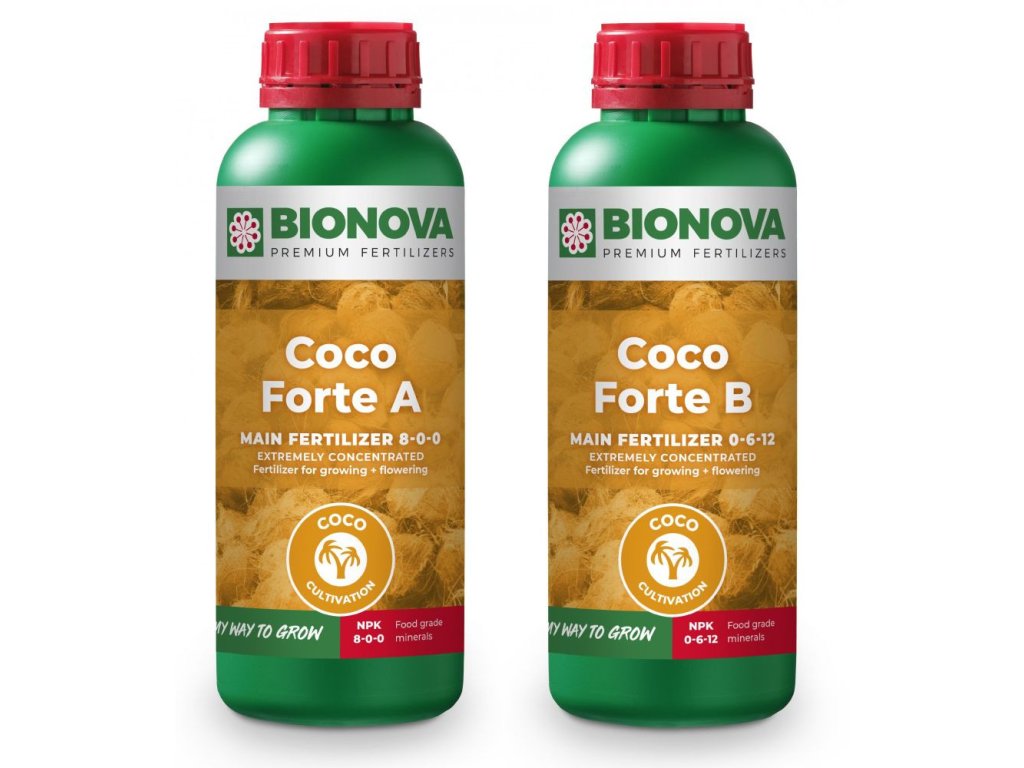 Coco Forte A+B kann von der ersten Wachstumswoche bis zur Woche vor der Ernte verwendet werden. Spülen ist notwendig. Es kann als Bewässerung und in Kombination mit allen Düngern, Stimulatoren, Mineralien, Universallösungen und Bionova-Substraten verwendet werden.