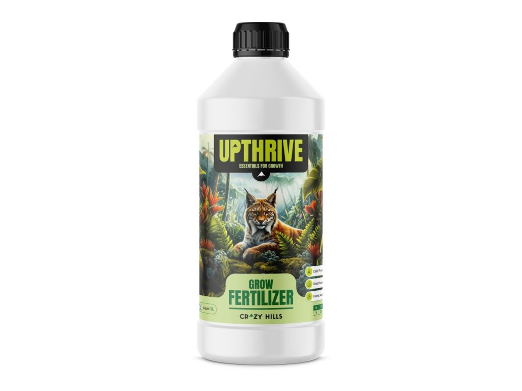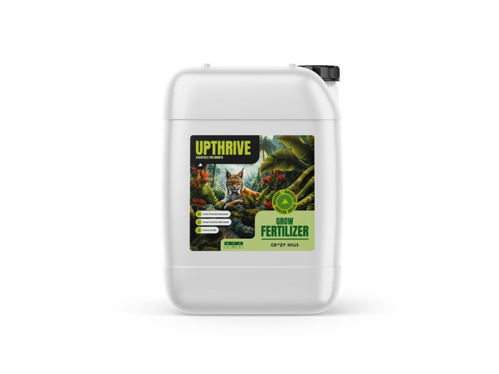 Crazy Hills UPTHRIVE ist ein Wachstumsdünger, der das vegetative Wachstum der Pflanze maximiert. Seine spezielle Zusammensetzung aus rein natürlichen Inhaltsstoffen liefert die richtige Menge an Nährstoffen, Mikronährstoffen, Spurenelementen, Vitaminen, Betainen und Zuckern, die ideal für den Anbau von starken und gesunden Pflanzen sind. UPTHRIVE bereichert den Boden und liefert Nährstoffe für die nützlichen Mikroorganismen im Wurzelbereich, womit ein optimaler Start in die Vegetationsphase der Pflanze sichergestellt wird. Es versorgt die Pflanze mit genau dem, was sie für ein gutes Wurzelwachstum und eine gesunde Ernte benötigt, legt den Grundstein für die Blüte, Knospenbildung und Fruchtentwicklung und macht sie zu blühenden und gedeihenden Pflanzen.