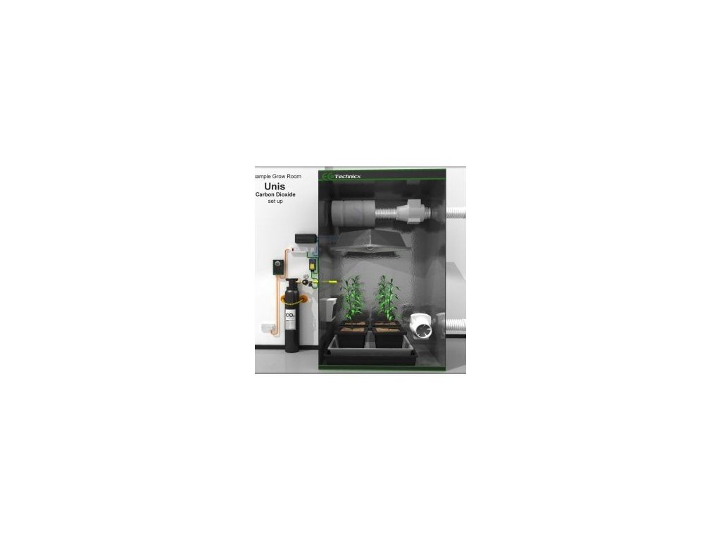Der Ecotechnics Unis CO2 Controller ist ein sehr einfaches Set zur CO2-Freisetzung in der Anbauumgebung. Schließen Sie einfach eine CO2-Flasche an und geben Sie die Größe des Anbauraumes in den Regler ein. Unis kümmert sich um alles Weitere. Unis ist für Räume bis zu 100m2 geeignet.