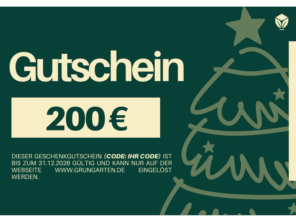 Sie sind sich nicht sicher, was Ihre Bekannten benötigen? Machen Sie es sich einfach und schenken Sie ihnen einen Geschenkgutschein im Wert von 200 €, damit sie sich ihr Pflanzzubehör nach eigenem Wunsch aussuchen können. Der Gutschein kann für unser gesamtes Sortiment verwendet werden und ist bis Ende 2026 gültig. Sie erhalten den Gutschein per E-Mail mit einem Rabattcode und auf Wunsch auch ausgedruckt im Paket, wenn Sie mehrere Produkte bestellen.