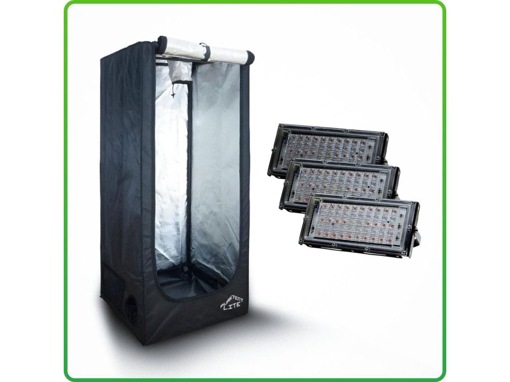 GrünGarten Komplettes Anzucht-Set Basic 1.0 – Pure Tent LITE 60x60x140 + (3pack) Modulares Reflektor