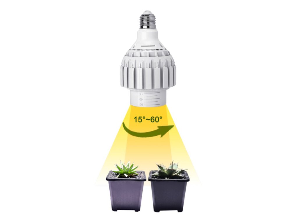 Die PAR30Z Zoom LED Pflanzenlampe verfügt über einen verstellbaren Lichtwinkel. Sie ist ideal für das Wachstum von Pflanzen, wie Agaven bei minimalem Lichtwinkel oder Farnen bei maximalem Lichtwinkel. Der Lichtwinkel kann verschieden hohen Aufhängungen angepasst werden, um den Bedürfnissen unterschiedlicher Pflanzen gerecht zu werden. Geeignet für das Wachstum von Sukkulenten, fleischfressenden Pflanzen, Zierpflanzen, Gemüse und anderen Pflanzen in Töpfen in Umgebungen ohne natürliches Licht.