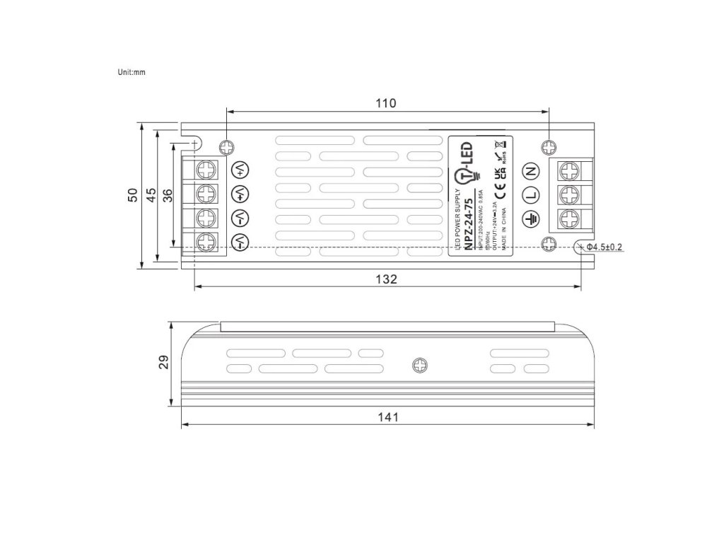 Kompakter LED-Schaltnetzteil 12V / 75W (IP20) für Innenanwendungen. Ideal für LED-Streifen, LED-Glühbirnen und andere 12V LED-Beleuchtungen. Mit Schutz gegen Kurzschluss (nachdem der Kurzschluss behoben ist, wird die Funktion wiederhergestellt) und Überlastschutz. Eingang 180–264V AC, Ausgang 12V DC, max. 6A. 2 Jahre Garantie.