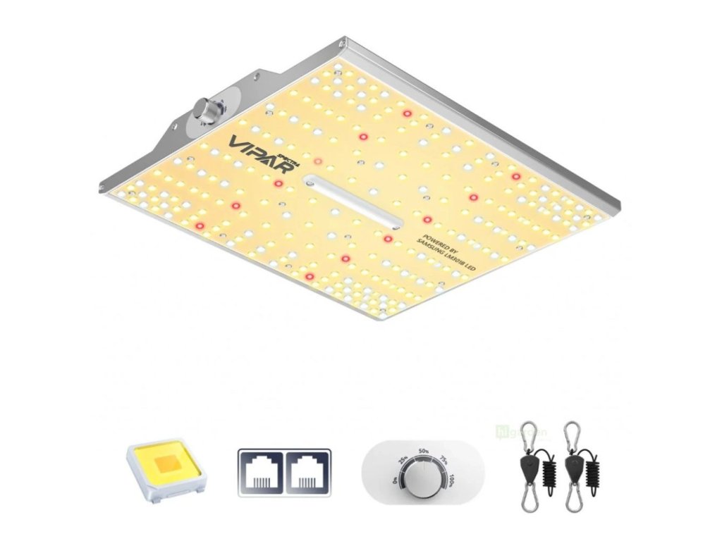 Technologische Neuheit für 2024 von der Marke Viparspectra mit hoher Effizienz! Vollspektrum-LED-Beleuchtung für den gesamten Anbauzyklus, von der Saat bis zur Ernte, ausgestattet mit ultra-modernen Samsung LM301H LED-Dioden und einem Mean Well HLG-Controller.