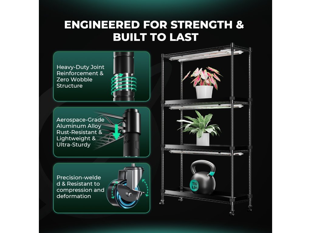 • Maximieren Sie den Raum und das Wachstum: Die sechsstöckigen Regale ermöglichen das gleichzeitige Anbauen verschiedener Pflanzen, von Kräutern und Blattgemüse bis zu Blumen. Jede Etage hat eine eigene Beleuchtung, um sicherzustellen, dass alle Pflanzen ausreichend Licht erhalten.