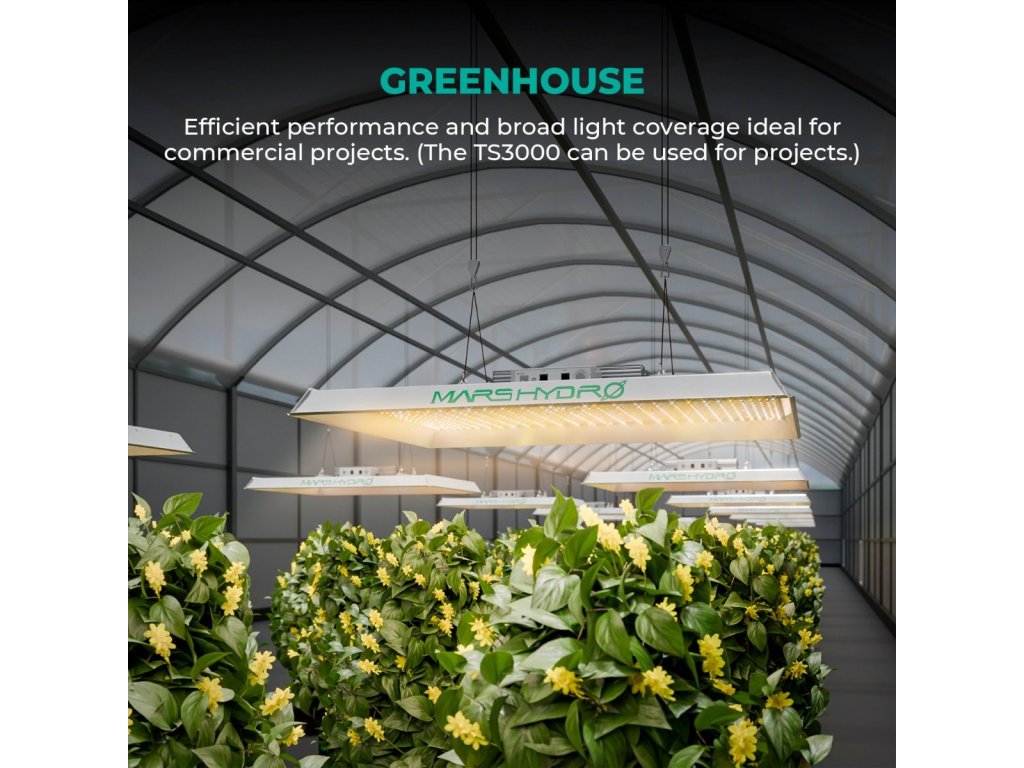 Die MARS HYDRO TS3000 LED GROW Leuchte ist die leistungsstärkste Version der TS Serie. Sie dominiert mit einer Gesamtleistung von 450W und ersetzt damit zuverlässig die 800W Entladungslampe. Die weißen LEDs haben eine geringe Leistungsaufnahme, so dass die Leuchte nicht überhitzt und keine aktive Kühlung benötigt. Das Licht simuliert perfekt das Sonnenlicht und versorgt die Pflanzen mit den notwendigen Nährstoffen. Das reflektierende Design sorgt für eine große Streuung, so dass eine deutlich größere Fläche abgedeckt wird.