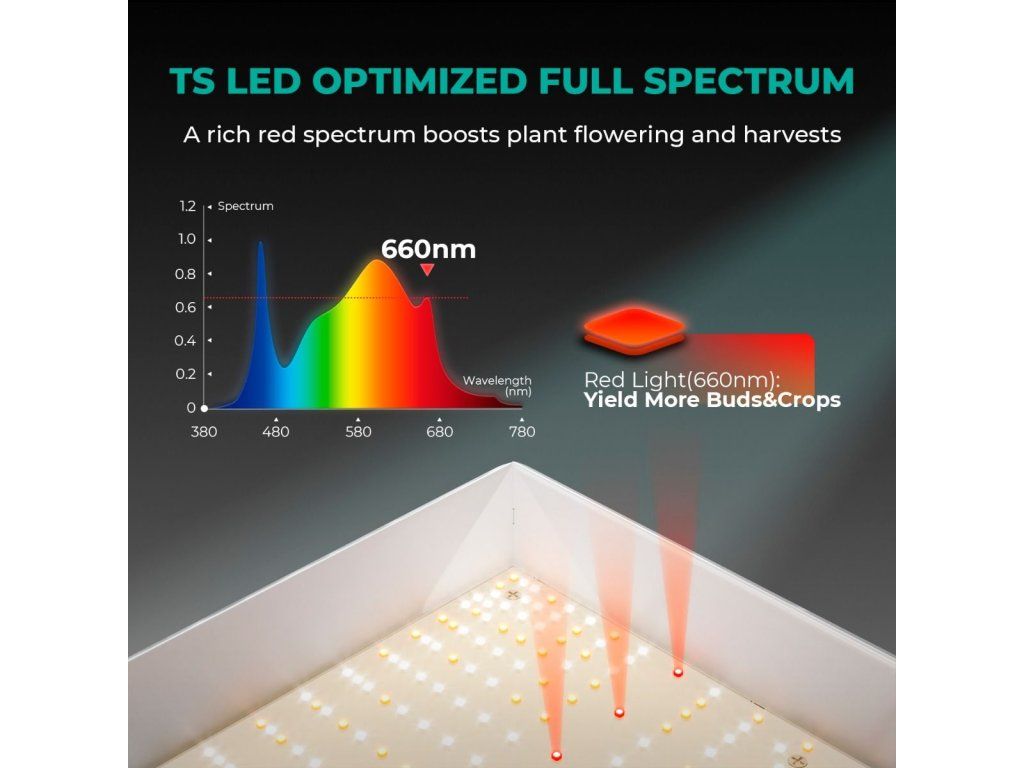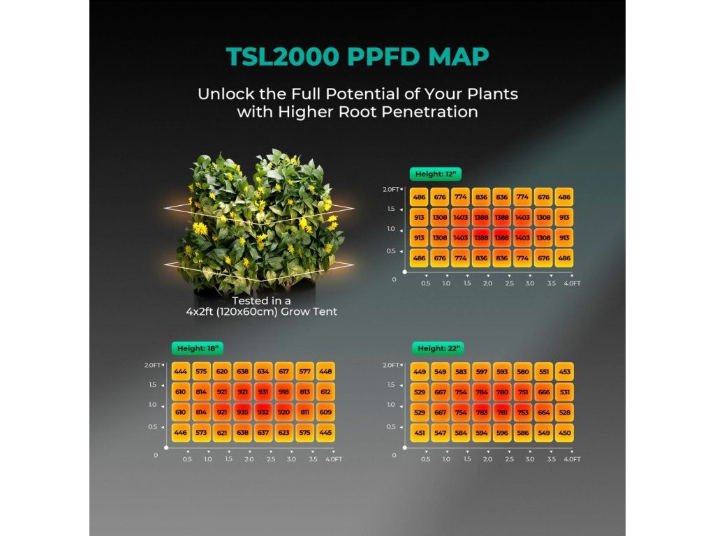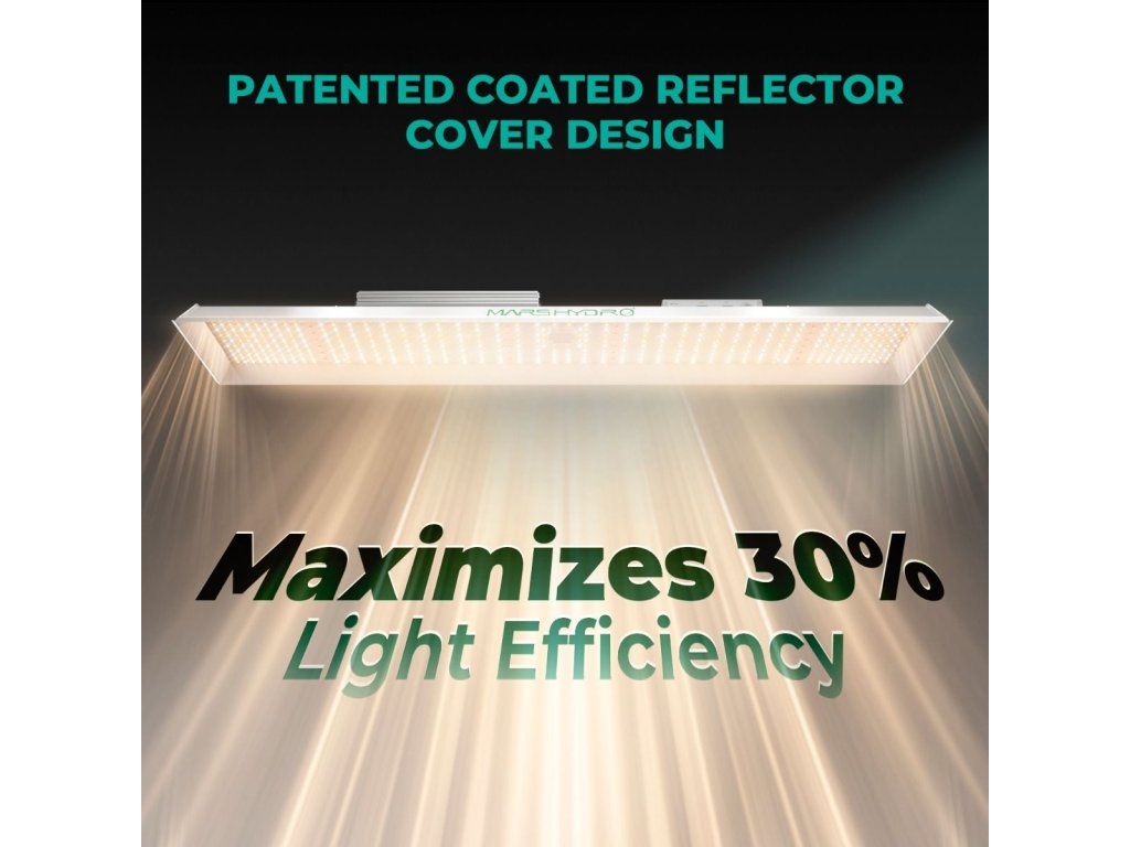 Die LED GROW-Leuchte MARS HYDRO TSL2000 verwendet 624 LEDs von EPISTAR. Die Leuchte verwendet weiße LEDs, die weniger Strom verbrauchen, so dass man keinen lauten Lüfter zur Kühlung verwenden muss. Gleichzeitig zeichnen sich diese LEDs durch eine längere Lebensdauer und eine genauere Simulation des natürlichen Lichts aus, was sie zu einer hervorragenden Darstellung der Außenbedingungen macht. Das reflektierende Design der Leuchte sorgt für eine gleichmäßige Lichtstreuung und -intensität.