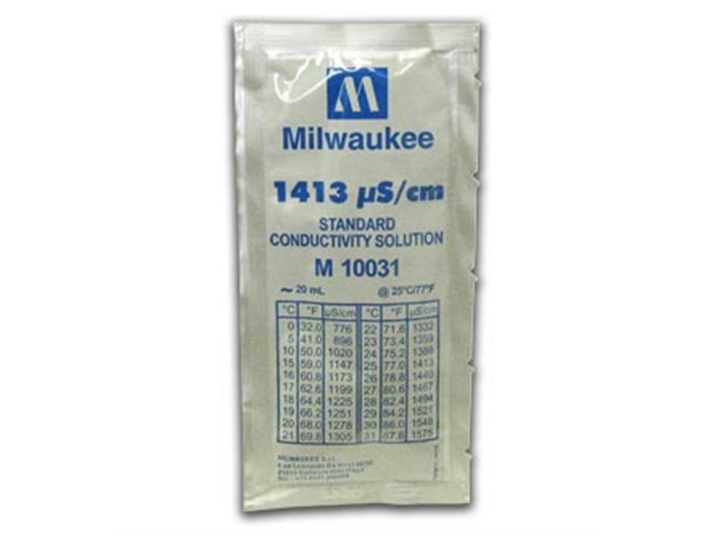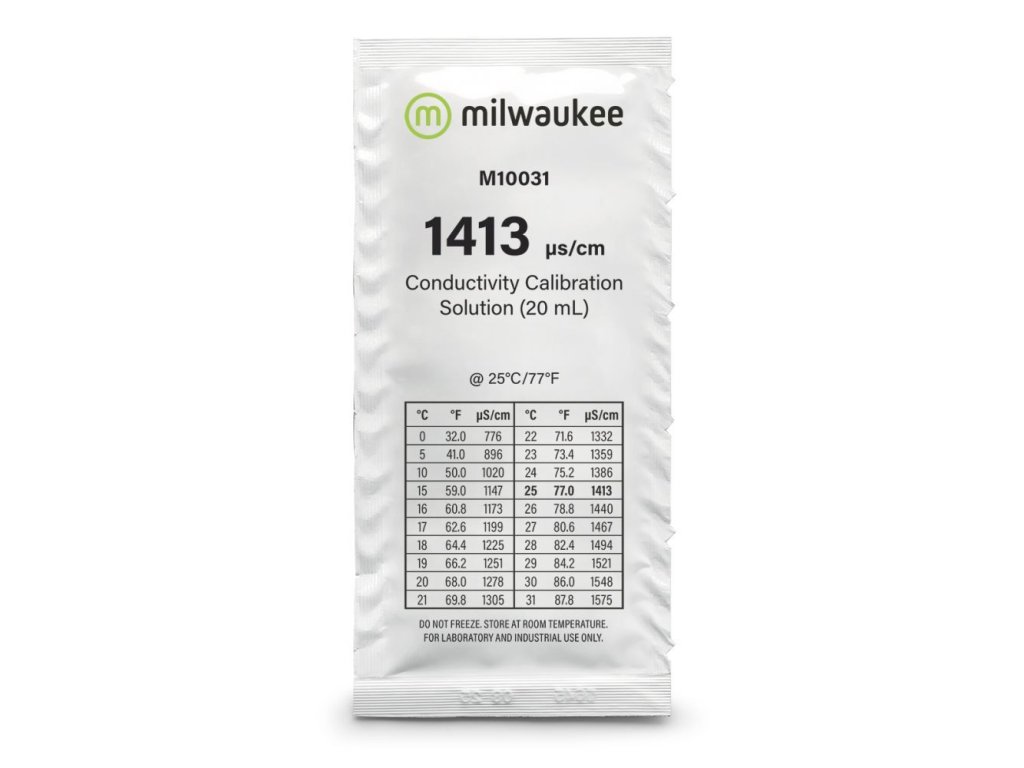 Kalibrierungslösung im Beutel für digitale EC-Messgeräte. Inhalt: 25x 20ml. 1413 µS/cm. Rabattierter Preis pro Karton.
