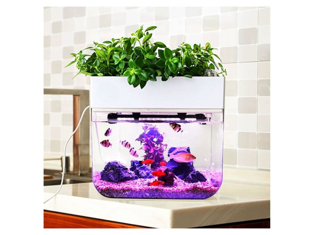 Entdecken Sie die innovative Art des Pflanzenanbaus und der Fischzucht gleichzeitig. Dieses kompakte und stilvolle System mit den Abmessungen 28 × 31 × 19,5 cm ist aus hochwertigen Materialien gefertigt und gewährleistet einen ökologischen und effizienten Anbau. Ein automatischer Zyklus alle 2-3 Minuten versorgt die Fische mit dem benötigten Sauerstoff und gleichzeitig werden die Pflanzen mit Nährstoffen versorgt.