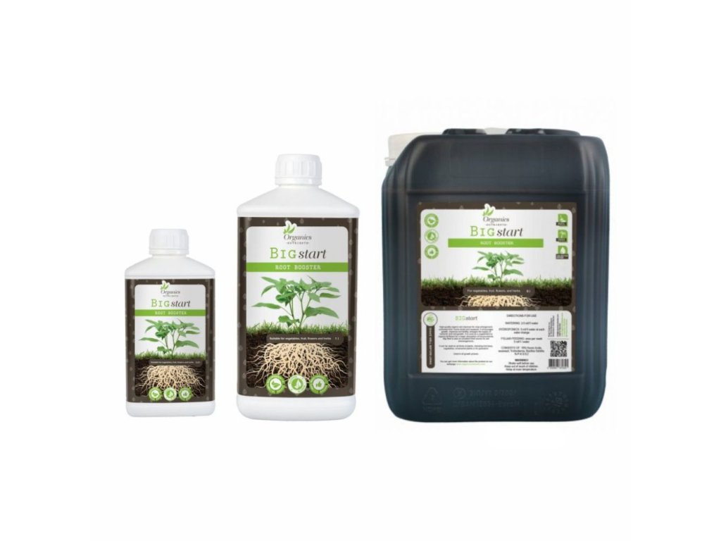 Organics Nutrients Big Start ist ein hochwertiger organischer Boden- und Wurzelverstärker zur Steigerung der Ernte, der aus Huminsäuren und Meeresalge extrahiert wird. Darüber hinaus enthält es die Schimmelpilze Trichoderma und Bacillus subtilis für eine bessere Pflanzenresistenz, welche deren Wachstum fördern, die Bodenfruchtbarkeit verbessern, die Nährstoffverfügbarkeit erhöhen und das Wurzelwachstum fördern. Der Big Start wird auch als Zusatz zu organischen Düngern zur Steigerung der Zufuhr von Mikronährstoffen verwendet. Big Start ist auch eine ausgezeichnete Nahrungsquelle für Bodenmikroorganismen. Es kann auf alle Arten von Pflanzen angewendet werden, einschließlich Obstbäumen, Gemüse sowie Zierpflanzen oder sogar auf Wiesen. Es wird in allen Wachstumsstadien der Pflanze verwendet.