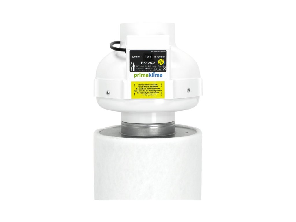 Die Kombination aus dem zweistufigen PK125-2 Lüfter und dem Eco line K2601-flat-125 Kohlefilter ermöglicht eine leise und sehr effiziente Luftfiltration. Mit einer Leistung von bis zu 400 m3/h ist es ideal für den effizienten Abzug und Geruchsentfernung. Dieses Set steht in seiner Klasse an der Spitze dank seiner hohen Verarbeitungsqualität und zuverlässigen Leistung.