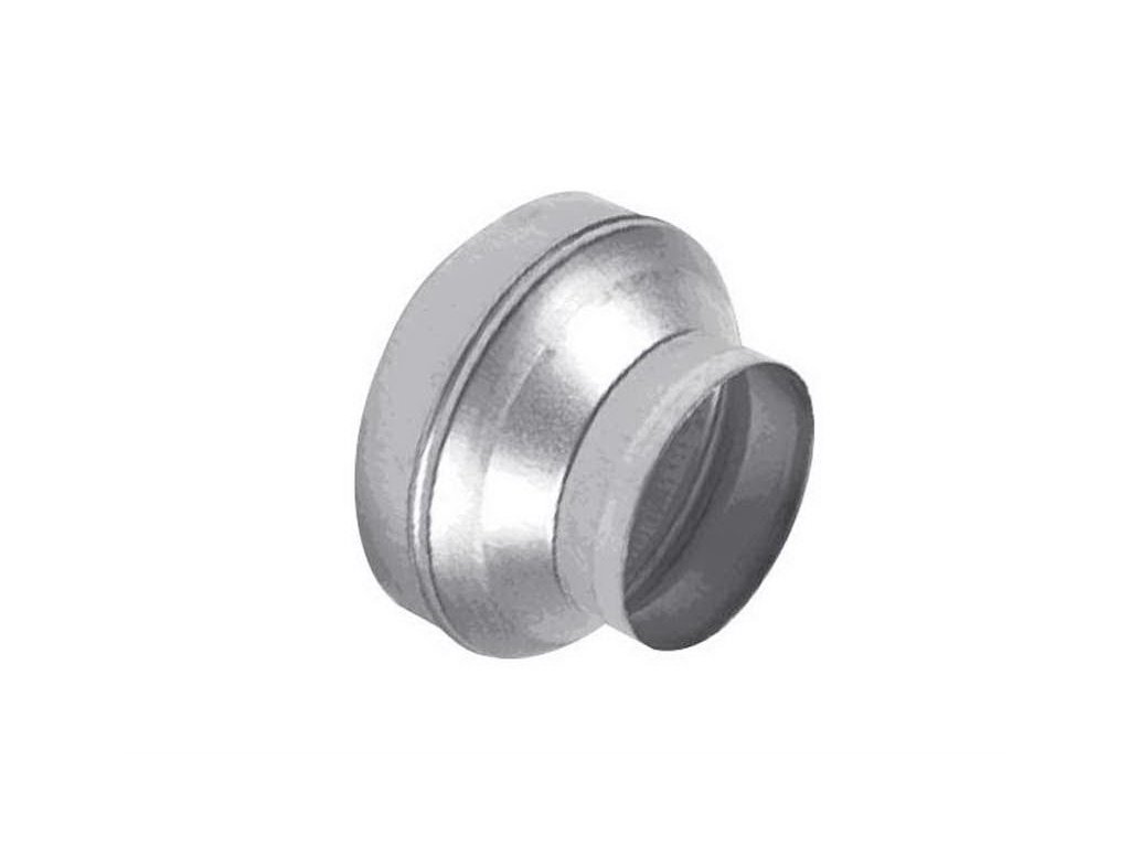 Metallkupplung für das Lüftungssystem. Reduzierstück für den Rohrübergang 200-160 mm, Verbindung von Ventilator und Rohrleitung.