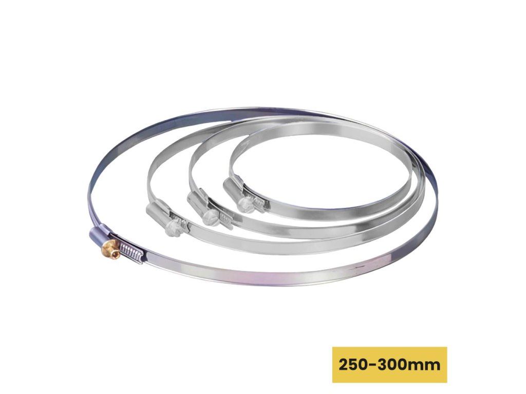 Spannbänder bieten eine einfache und zuverlässige Lösung zur Befestigung von Rohren mit einer Größe von 250-300mm. Durch die einfache Anpassung an verschiedene Größen ermöglichen sie eine schnelle und feste Verbindung, die dort hält, wo sie gebraucht wird. Sie sind kompatibel mit allen Arten von flexiblen Rohrleitungen und vereinfachen sowohl die Installation als auch die Wartung der Systeme.