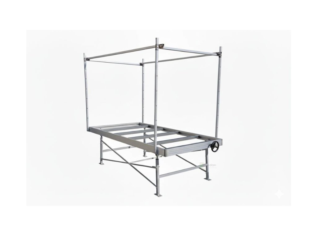 Die robuste Metallkonstruktion mit präzise entworfenem Schiebemechanismus bietet maximale Flexibilität beim Indoor-Anbau. Der Tisch ist ideal für den Einsatz mit Ebb&Flow Bewässerungswannen und ermöglicht einfachen Zugang zu den Pflanzen, effektive Bedienung und bessere Organisation des Anbauraums.