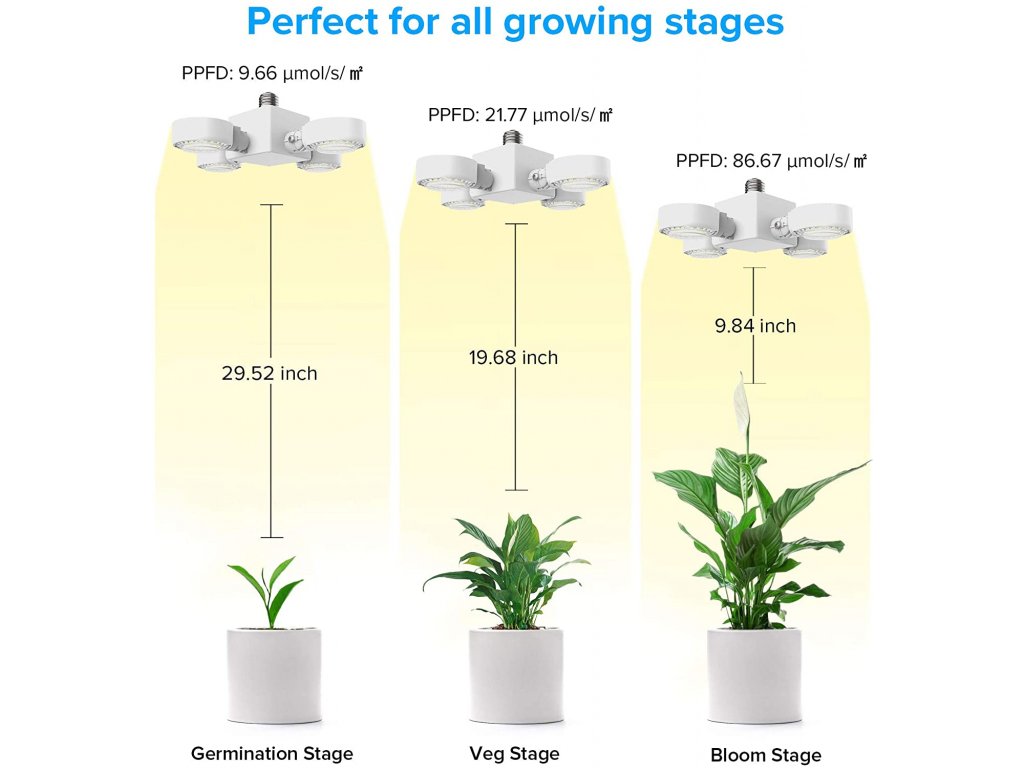 Die 30-W-LED-Lampe von SANSI ahmt das natürliche Sonnenlicht nach und bietet das gesamte Spektrum, das für ein gesundes Pflanzenwachstum erforderlich ist. Sie verbessert die Effizienz der Photosynthese und sorgt dafür, dass Ihre Pflanzen schneller und gesünder wachsen.