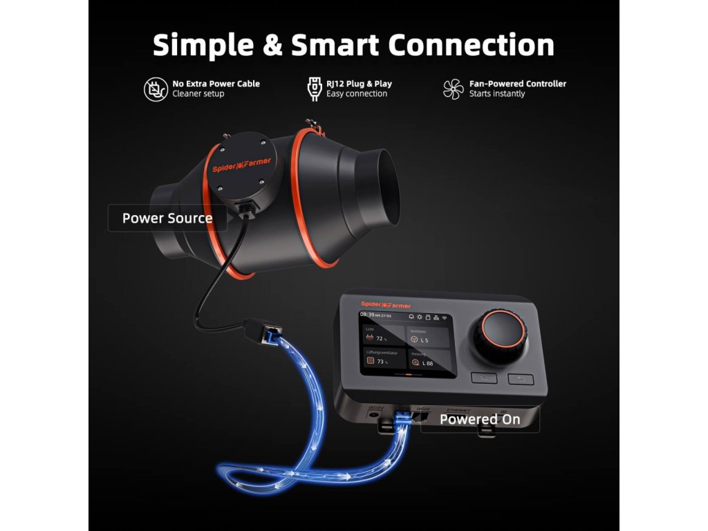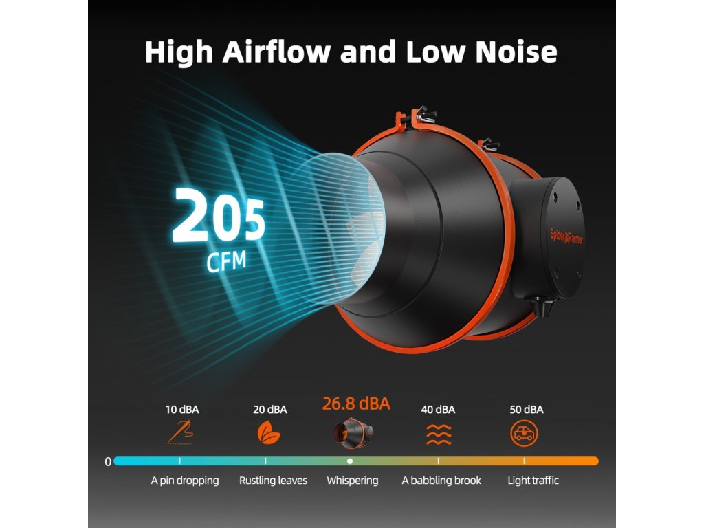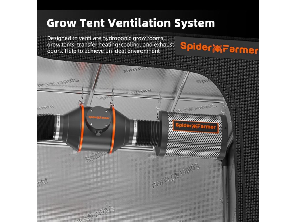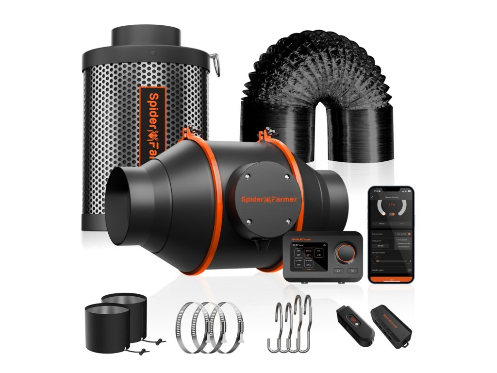 Spider Farmer 102 mm Inline-Ventilator 348 m³/h, programmierbarer Regler
