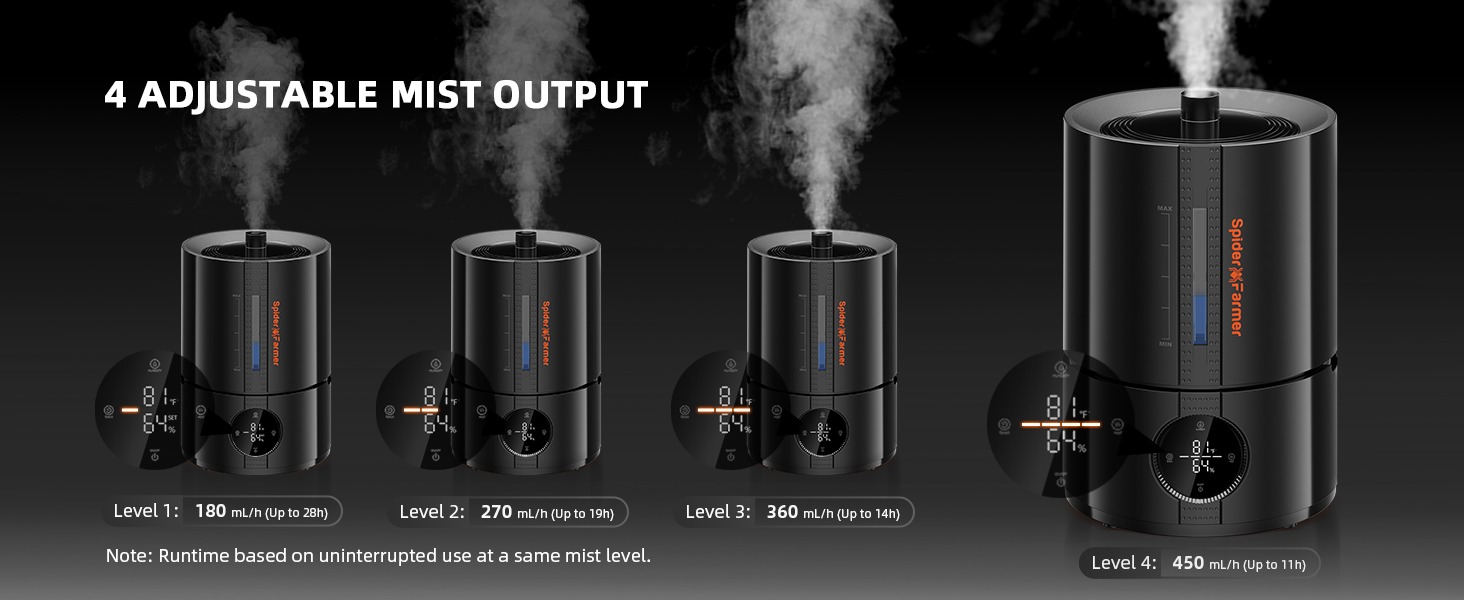 - Maximale Befeuchtung: 450 ±5% ml/h