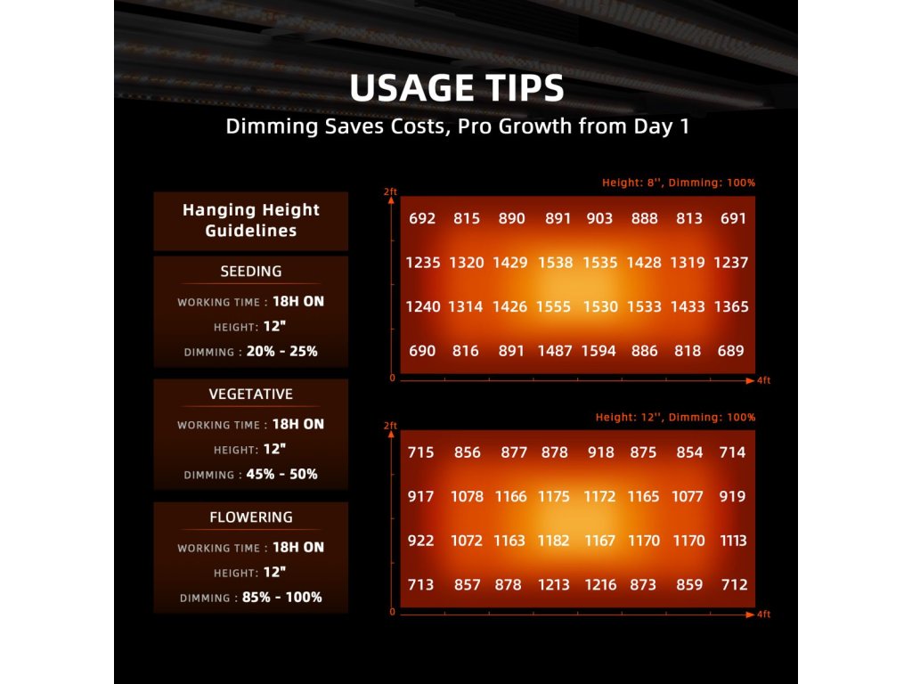 - Spektrum: 2800-3000K, 4800-5000K,660-665nm, Far-Red (700-800nm)
