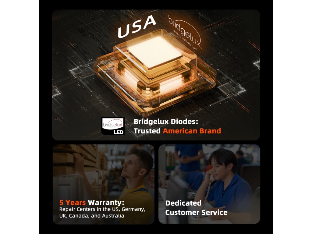 Spider Farmer verwendet LED-Dioden von Bridgelux, einer bekannten amerikanischen Marke mit mehr als 20 Jahren Erfahrung. Diese Technologie bietet hohe Effizienz und lange Lebensdauer, wobei Züchter über einen stabilen Betrieb auch nach mehr als 3 Jahren Nutzung berichten.