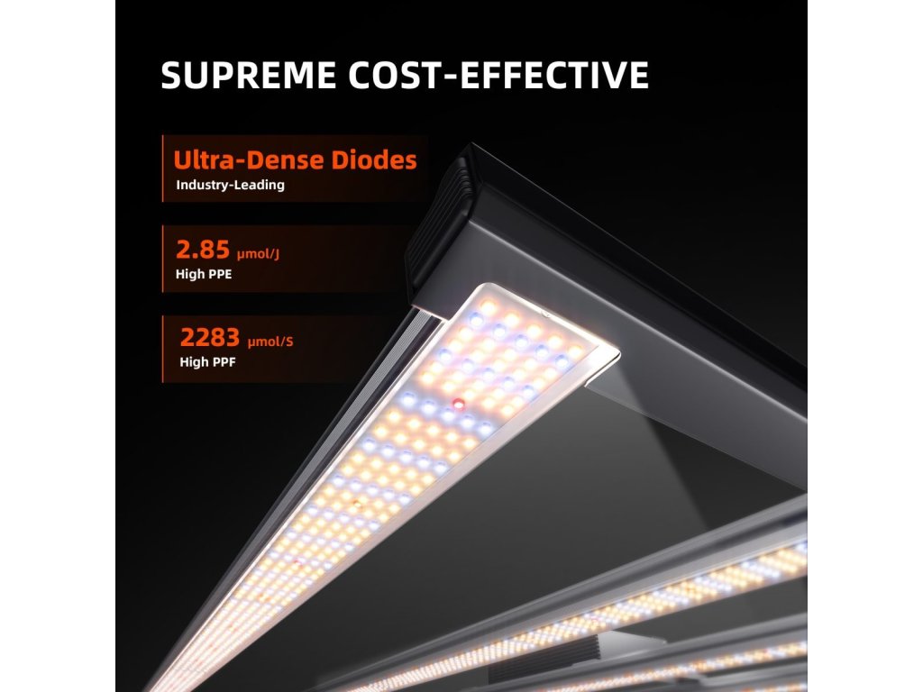 Die G-Serie von Spider Farmer ist die ideale Wahl für Züchter, die Maximalertrag bei minimalen Kosten erzielen möchten. Dank der hohen Dichte der LED-Dioden bietet sie hervorragende Lichtpenetration und gleichmäßige Abdeckung. Hochdichte LED-Dioden verbrauchen weniger Energie, was höhere Effizienz und geringere Wärmeabstrahlung bedeutet.