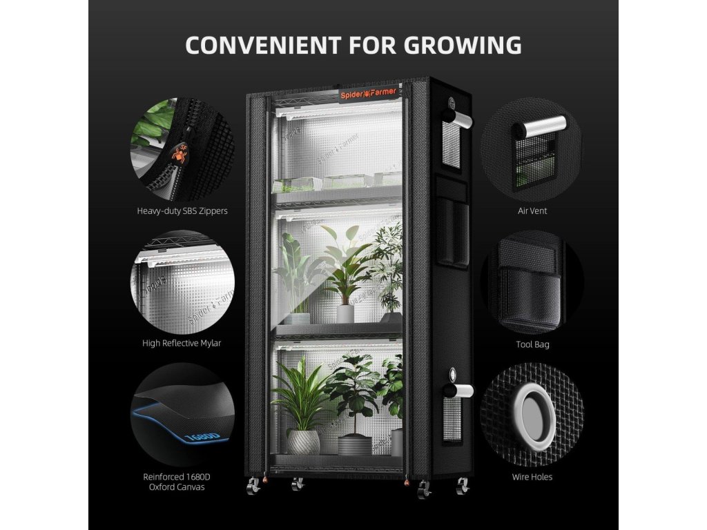 Erstellen Sie einekompakte und effiziente häusliche Gartenbauumgebung mit diesem innovativen Spider Farmer Set, das das gesunde Wachstum Ihrer Pflanzen in jeder Jahreszeit fördert.