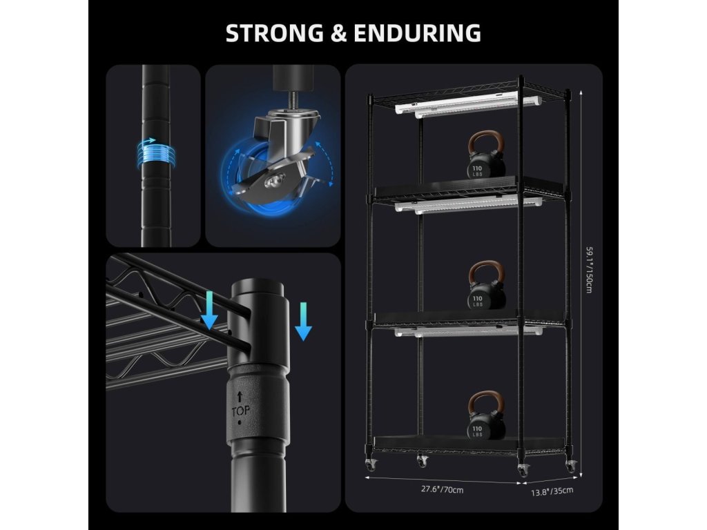 - Einfache Montage und Mobilität – einfache Installation ohne Werkzeug und Übertragungsmöglichkeit dank Rädern mit Verriegelungsmechanismus.