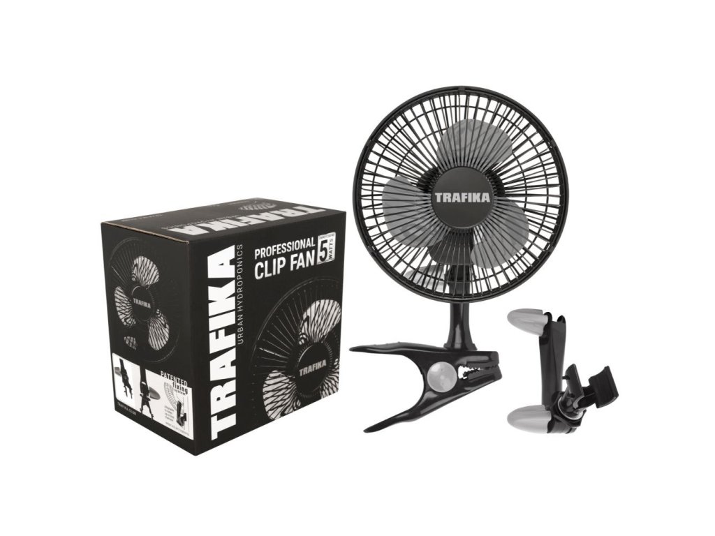 Der TRAFIKA CLIPFAN 15cm/5W Ventilator beinhaltet zwei Klemmen: Eine für den Tisch und eine exklusive patentierte Klemme, speziell entworfen für die direkte Befestigung an den Stangen von Anbauzelten. Seine Konstruktion erlaubt es, den Kopf des Ventilators manuell zu drehen und den Bedürfnissen jeder Kulturpflanze anzupassen. Ideal für die Installation in kleinen Kulturen oder Anbauzelten und als Ergänzung zur Belüftungssysteme in mittleren und großen Kulturen.
