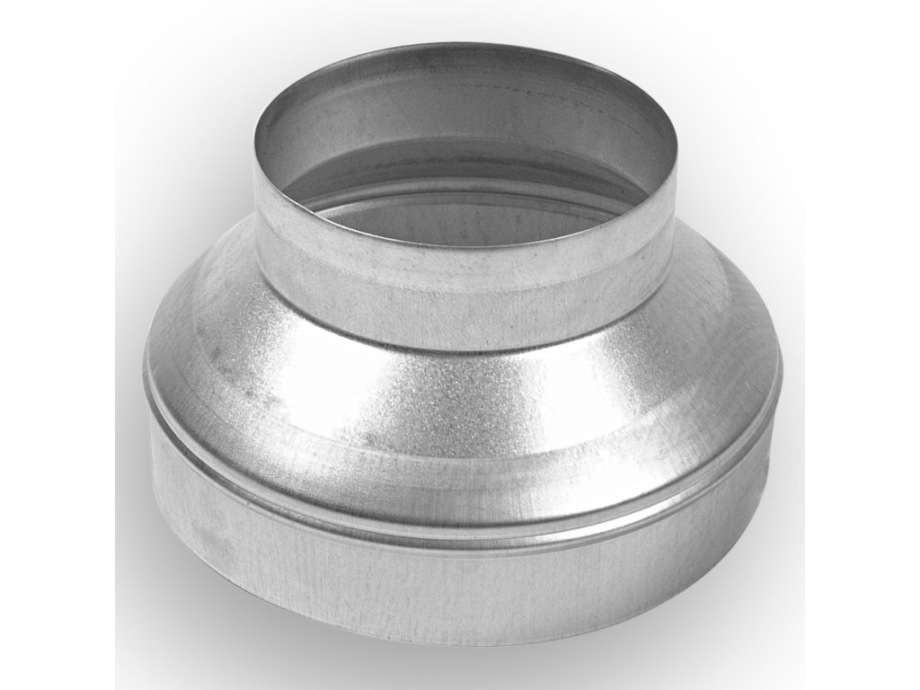 Metallkupplung für das Lüftungssystem. Reduktion für den Übergang von flexiblen Rohren 150-125 mm, Verbindung von Ventilator und Rohrleitung.